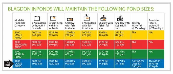 Blagdon Inpond 9000 is a complete unit for ponds up to 9000 litres, keeping your pond healthy and free from green water has never been so easy. The inpond is for ponds with no fish up to 9000L and with fish 6000 Litres. The unit also comes with an automatic LED night light and 4 fountain heads.