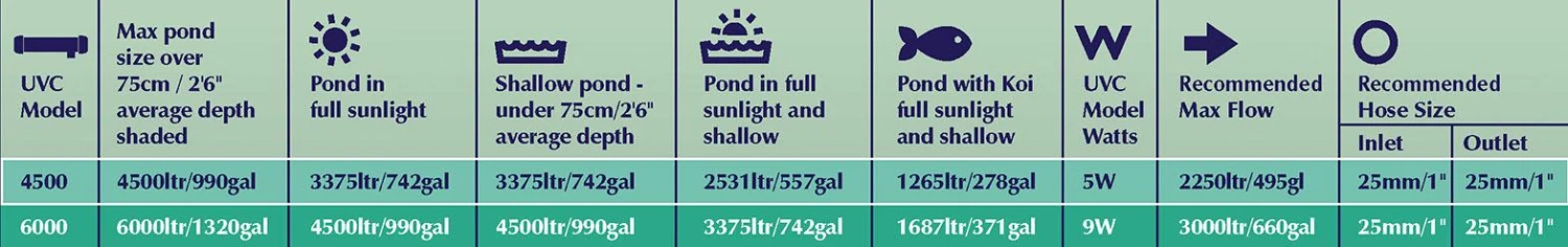 The Minipond UVC 6000 with 9w uv will keep your pond clear from free floating algae to prevent green water. The algae is exposed to the uv light killing it and clumping it together making it easy for your filter to trap the larger particles to be digested by the beneficial filter bacteria.