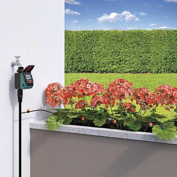 The video 2 plus needs no electrical connection and is powered by a 9v battery that will last the hole season. The LCD screen is complete with a battery status indicator, and a Claber Rain Sensor 90915 can be connected. The unit is fitted with a washable filter. The timers electronics are sealed in the unit for outdoor use.