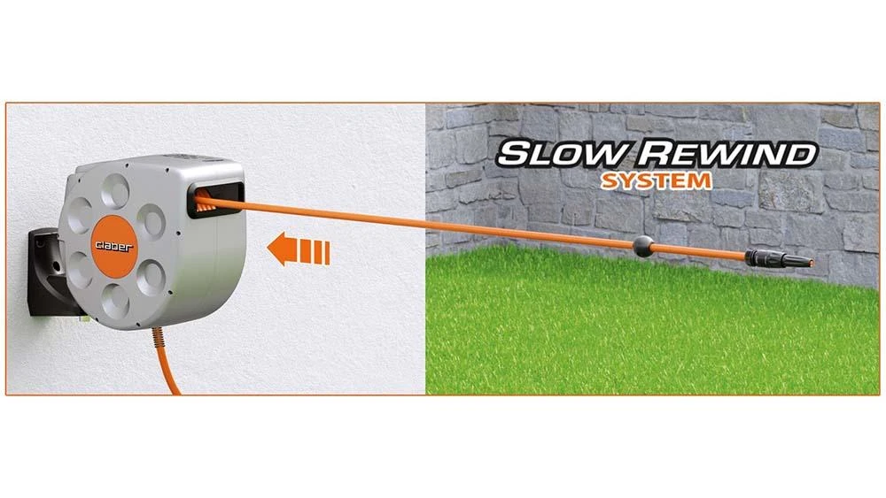 The Claber 30m Rotoroll Evolution is the newest up to date version of the automatic hose reels with a modern design and a new slow rewind mechanism that allows the hose to wind back up easily and safely. The automatic rewinding hose reel has a 180 degree swinging wall bracket for easy movement and can have a padlock fitted for security. The hose reel comes ready to use out of the box with 30 metres of non-deformable, anti-friction hose for quick smooth rewinding. Comes complete with tap extension hose, tap connector, spray nozzle and couplings.