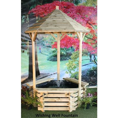 Create the perfect garden this summer with this amazing wishing well with fountain from Norlog. This will look fantastic anywhere in your garden and with the sound of water, sit back and relax in the garden. To give it the perfect look you can also add some small goldfish. The wishing well is built in no time with its easy slot together design. Made from Sustainable Pressure treated Swedish timber and delivered direct from the UK Manufacture.