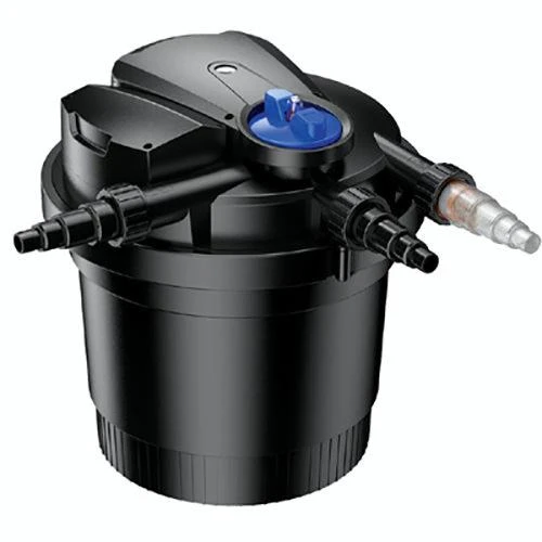Pondxpert Auto Spin Clean 6000 Pressurised Pond Filter is super easy to use clean and maintain with its inbuilt motor for auto clean function, It is the perfect solution for small pond keepers. With a built in 11w UV to prevent green water and automatic filter foam cleaning.